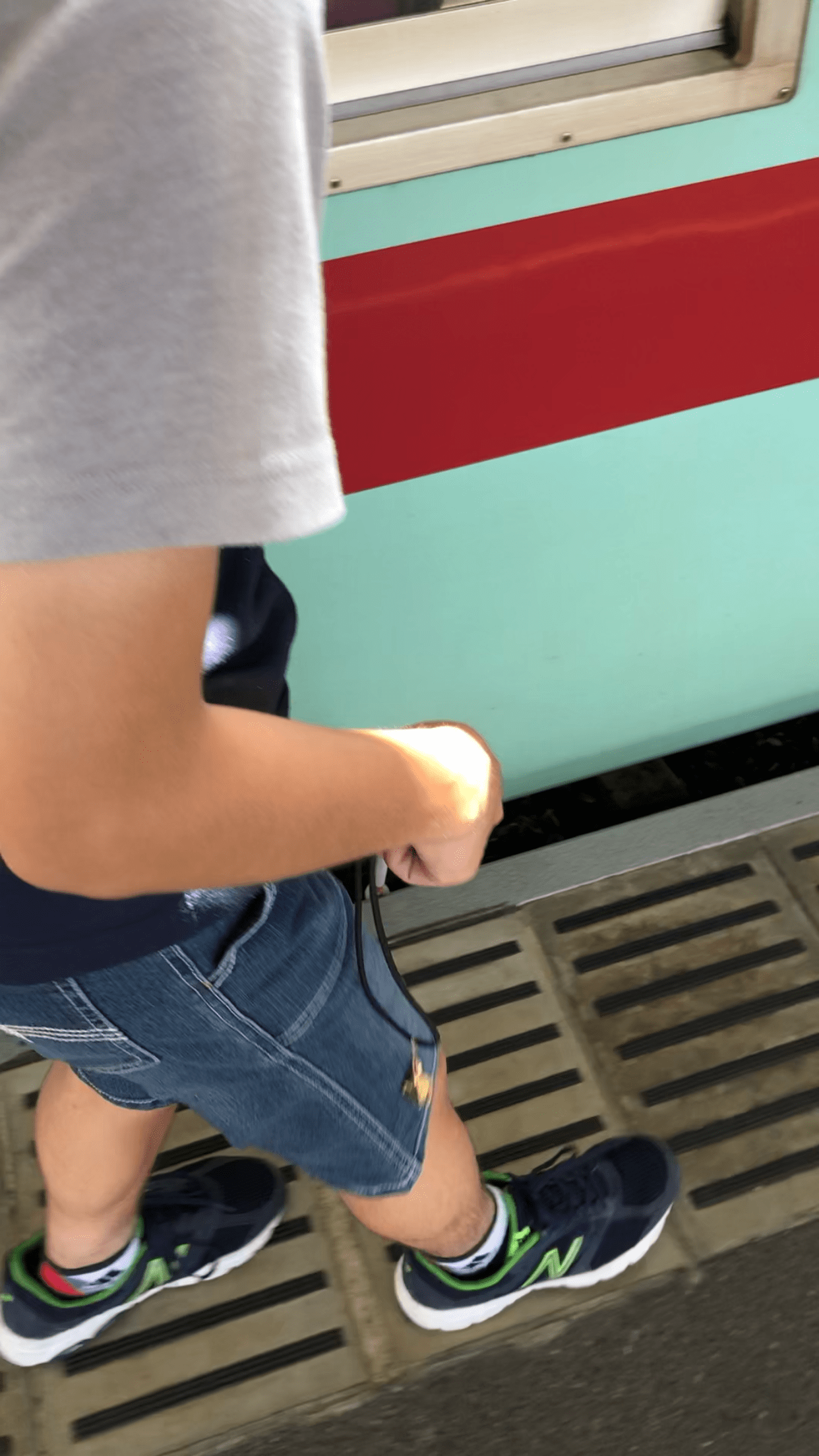電車乗降も前回に続き2度目。前回は、点字ブロックの注意ブロックよりそのまま乗り降りする形でしたが、今回は、電車のボディーを伝って、出入り口発見、乗る…という一連の流れを実施。繰り返していくうちに随分様になってきました。
