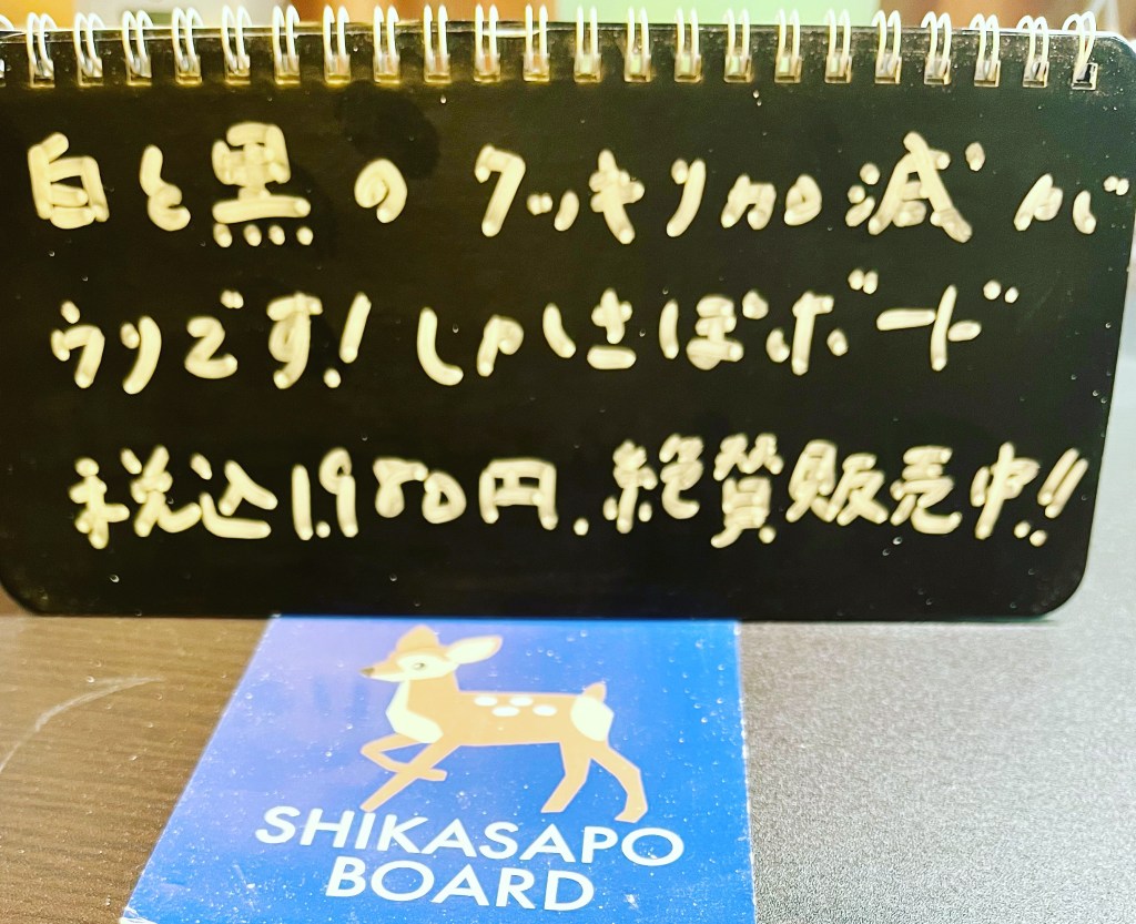 マットな真っ黒のボードに色乗りの良い白い文字!
