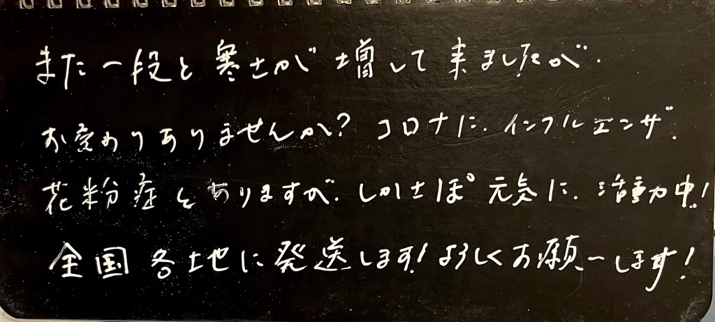 また一段と寒さが増して来ましたが、お変わりありませんか?