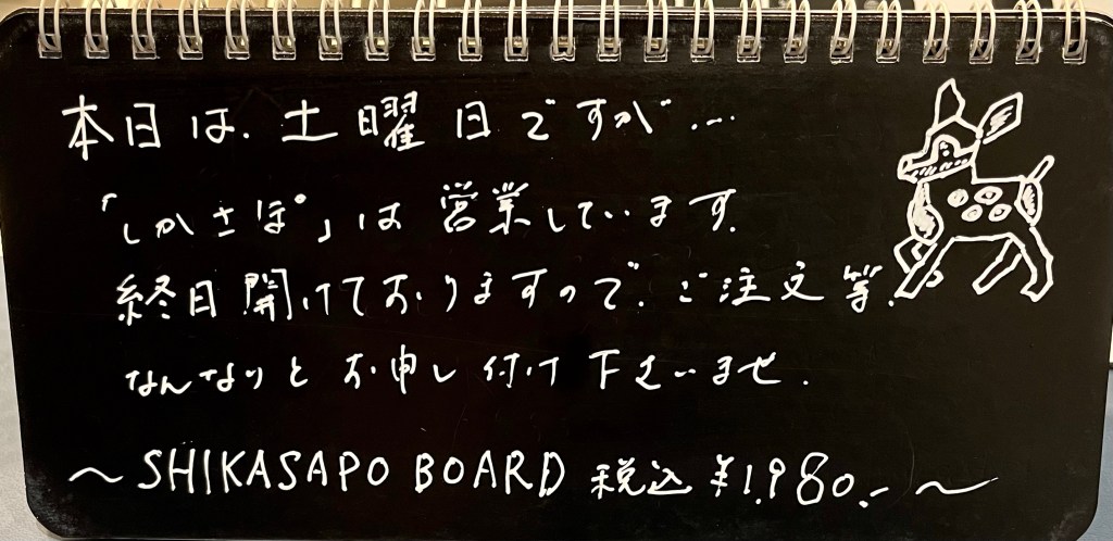 終日開けておりますので、ご注文など何なりとお申し付けください。