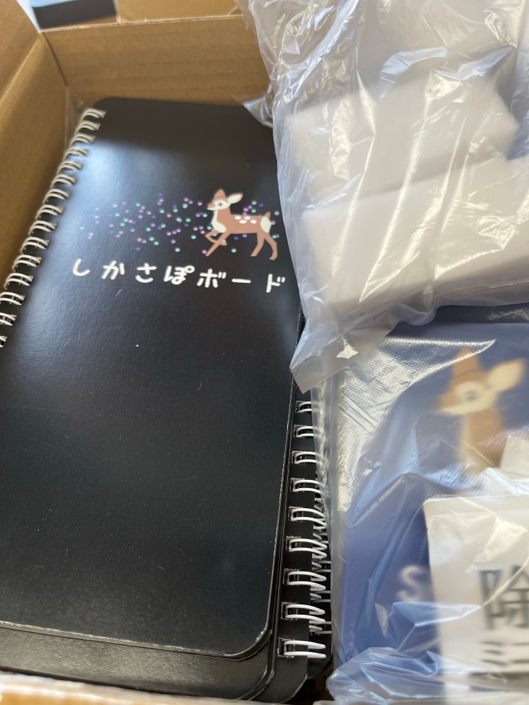 今日もまた、GW商戦に向けて、しかさぽボードを入荷して、袋詰めしました。