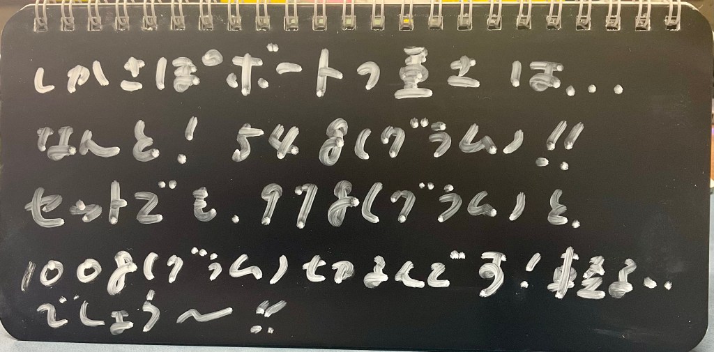 そうです、単体で54g。これだけでもメッチャ軽いのですが、白ペンと、イレーザーと、アルコールティッシュと、栞に説明書も合わせた重さが、なんと、97g!…