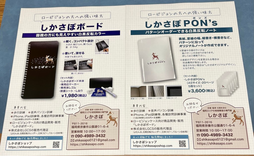 現在、このチラシたちを国内の視覚障害関連の施設や事業所等に送りはじめたので、いずれそのうち手にとっていただけると思います。