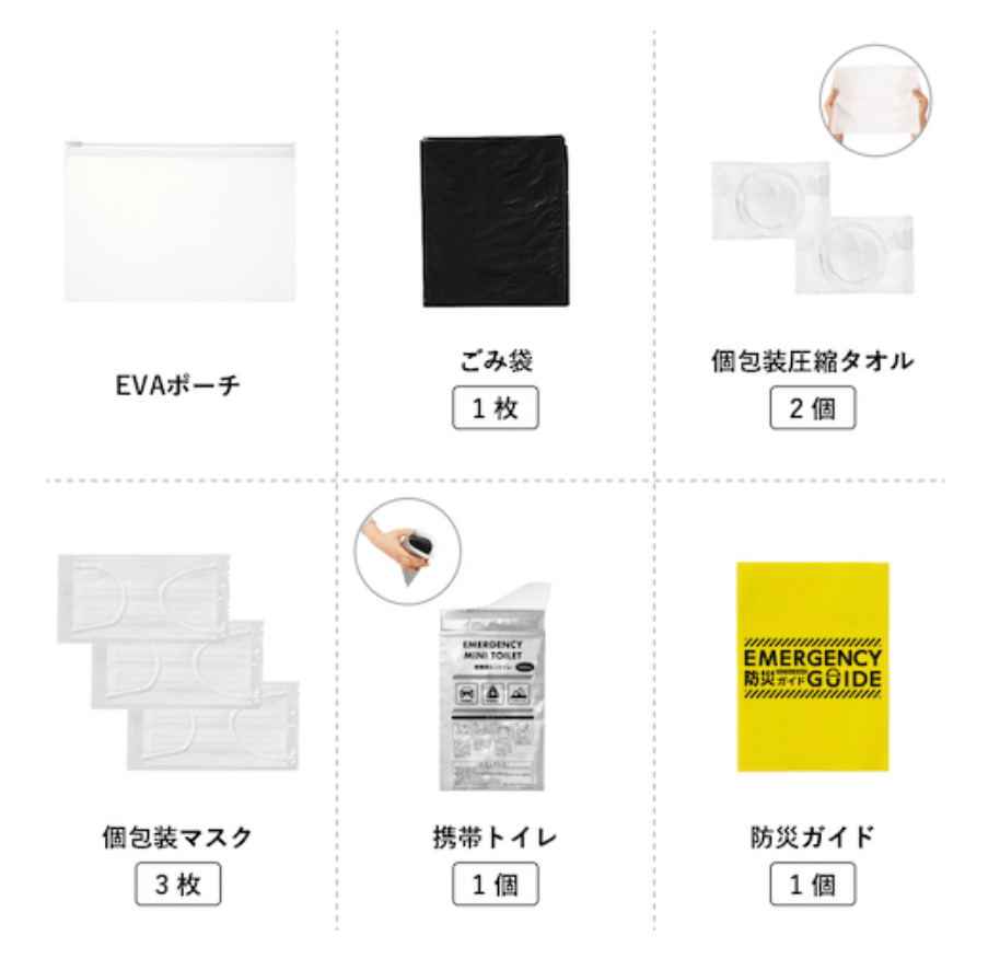 しかさぽバッグは30L入りますので、携帯ラジオ、お着替え、防寒具も入ります。もちろん飲み水も。