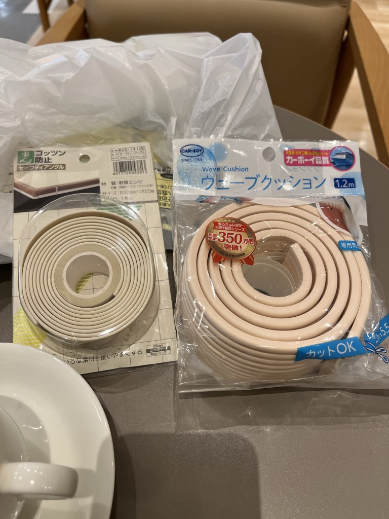 屋内用のクッション材で、タンスの角やテレビの角から身を守るべく、貼ってみようかと。この方、巻き爪とのことで、そこをぶつけるとえらく悶絶するという。うん、書いているだけで、痛みを感じてくる。多少の軽減につながればと思う。