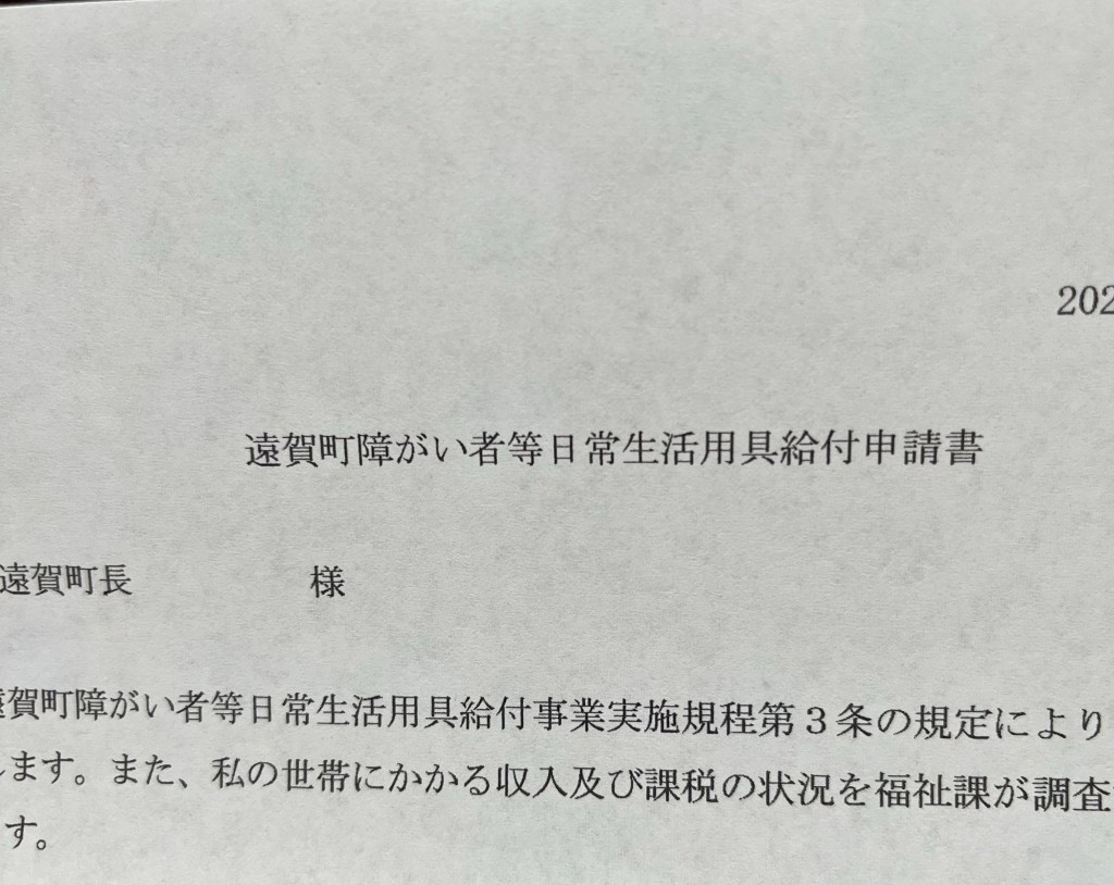 申請書は役場のホームページからダウンロードし、記入できる範囲は記入した。