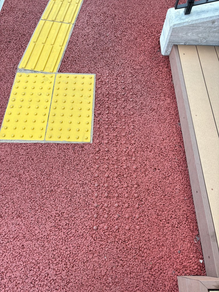 ご存知のように点字ブロックは「伝うモノ」であり、もちろん踏む人もいるが、この警告突起は、伝うことから大きく逸脱している。