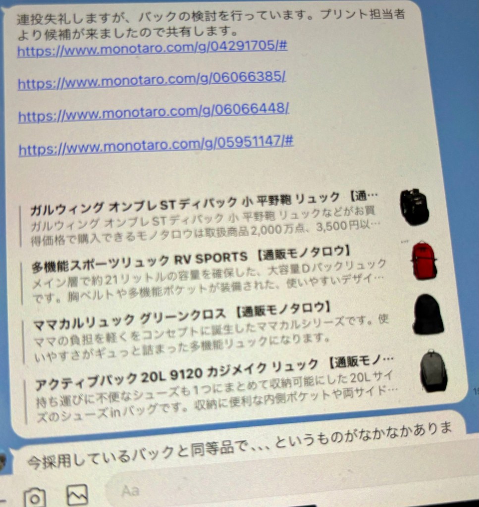 「女性向きに20Lのバッグを現行の30Lバッグと併売することは良いこと(思っていた)」、「ヘルパーさんに30Lのバッグを見せたら、「私には大きいから」とのこと」。