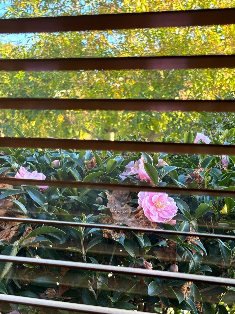 日々窓を前にして仕事をしているが、この時期になると窓の左側に陣取る山茶花が花を咲かせる。