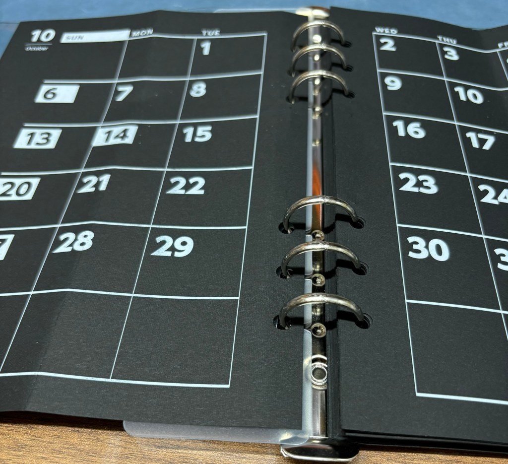 昨日、メーカーから部材が届いたので、穴を開けたり、綴じたりして完成形を作業していました。完成形はそこそこ厚く、結構な枚数があります。まあ、1年分ですもんね。もちろん、市販のA5システム手帳のリフィルなども使えばオリジナリティあふれる一冊の完成です。