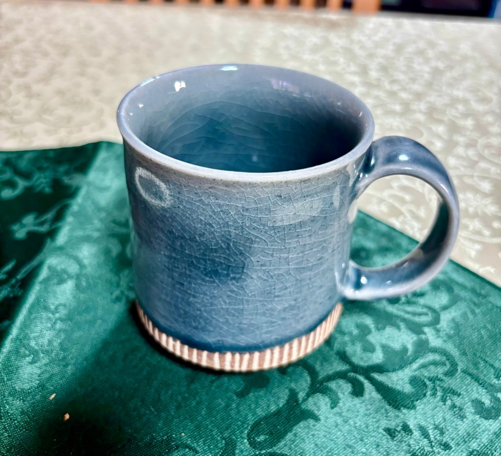 今回もまたそんなマグカップに出会えたらと、あちこちの窯元さんを見て回りました。で、今回も同じく美濃焼の不動窯さんのマグカップに決定しました。大事宝と持ち帰りまして、大安を待ってデビューとなります。