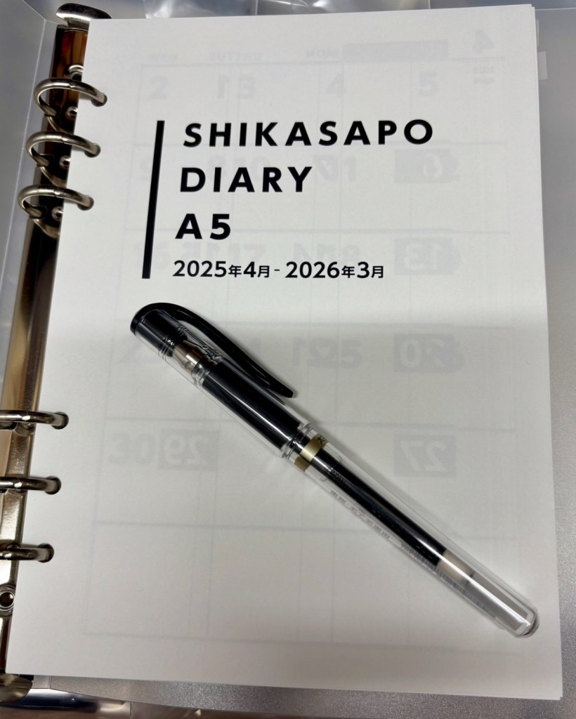 白地に黒文字のしかさぽダイアリー(A5サイズ)。