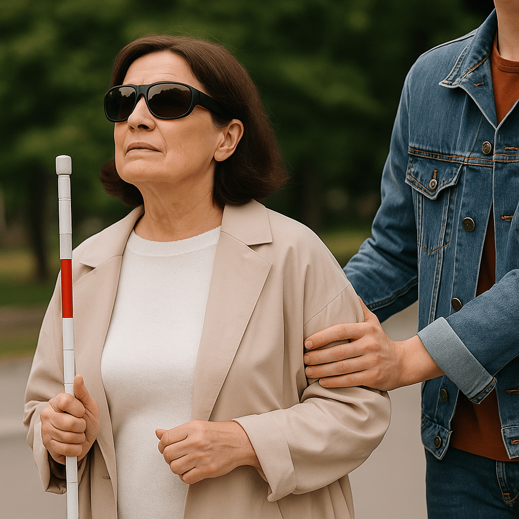 白杖の持ち方、段差の越え方、音の聞き分け――