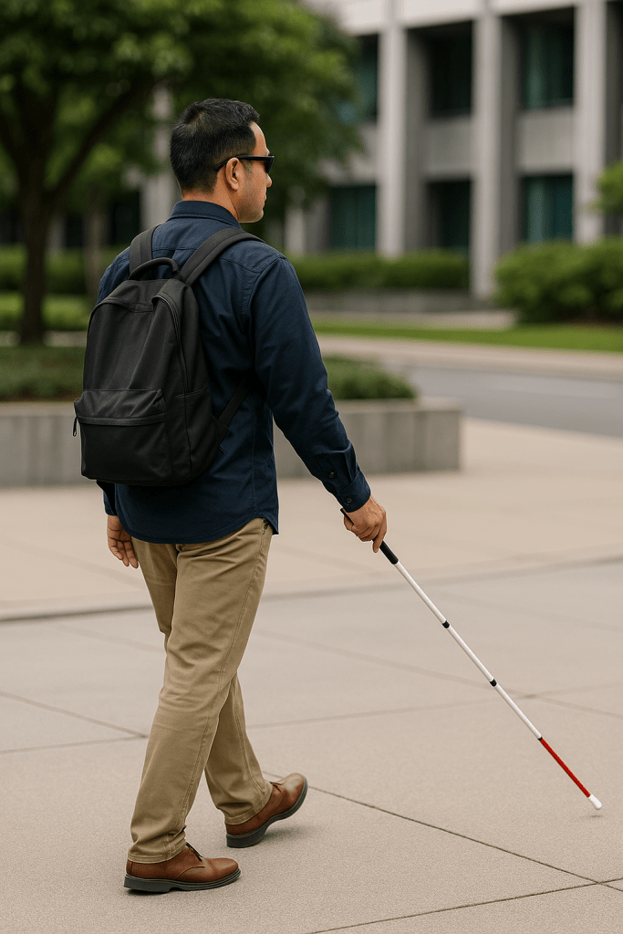 視覚に障害があっても、白杖を持ち、自分の力で移動できるようになりたい。