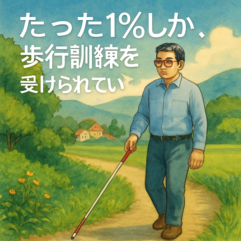 九州・沖縄には、およそ26,000人の視覚障害者が暮らしています。しかしそのうち、2024年度に実際に「歩行訓練」を受けられた方は、わずか1%以下――ほんの数百人に過ぎません。