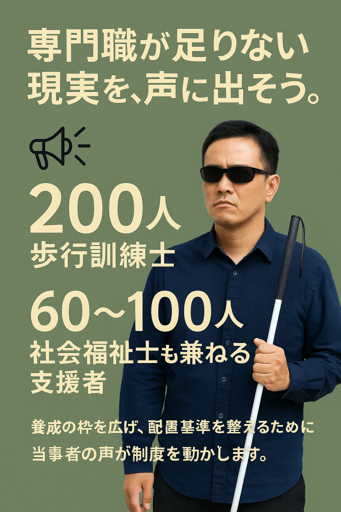 移動訓練を受けたくても「訓練士がいない」「待機が長い」――そんな声を今も全国で聞きます。