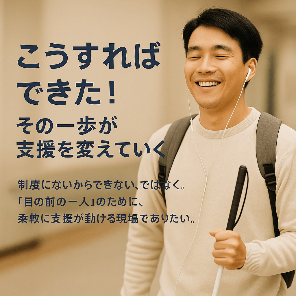 しかさぽが大事にしているのは、現場の小さな工夫です。目の前の一人ひとりの「こうすればできた」「この方法が合っていた」という経験が、本当のイノベーションの種です。教科書通りではなく、試行錯誤の中で生まれる支援のかたち。これこそ、現場でこそ育つ「異能」だと私たちは考えています。