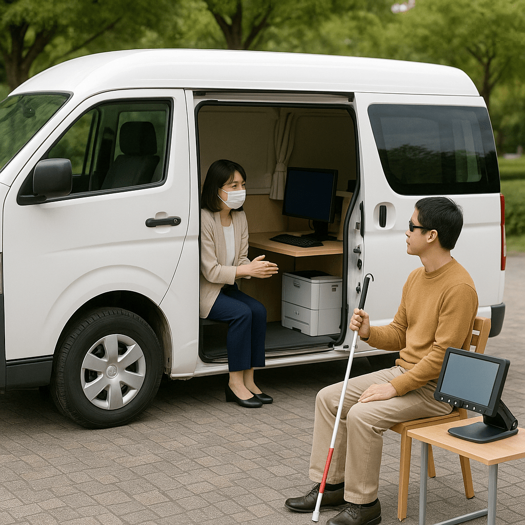 さらに、移動オフィスカーでは機材だけでなく、人との対話や体験の時間も届けられます。個別のニーズに応じた支援計画をその場で相談できるという柔軟性は、当事者自身の「こうしたい」「こうなりたい」という意思を育てていく場にもなります。