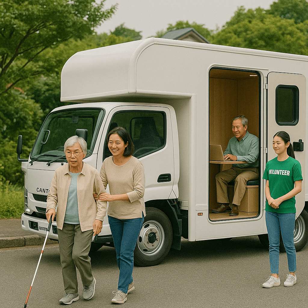そこで登場するのが、キャントタスを活用した“移動式訓練室”。車内は広く、個別訓練やICT支援も安心して実施でき、さらに地元のボランティアとの連携拠点としても活用可能です。