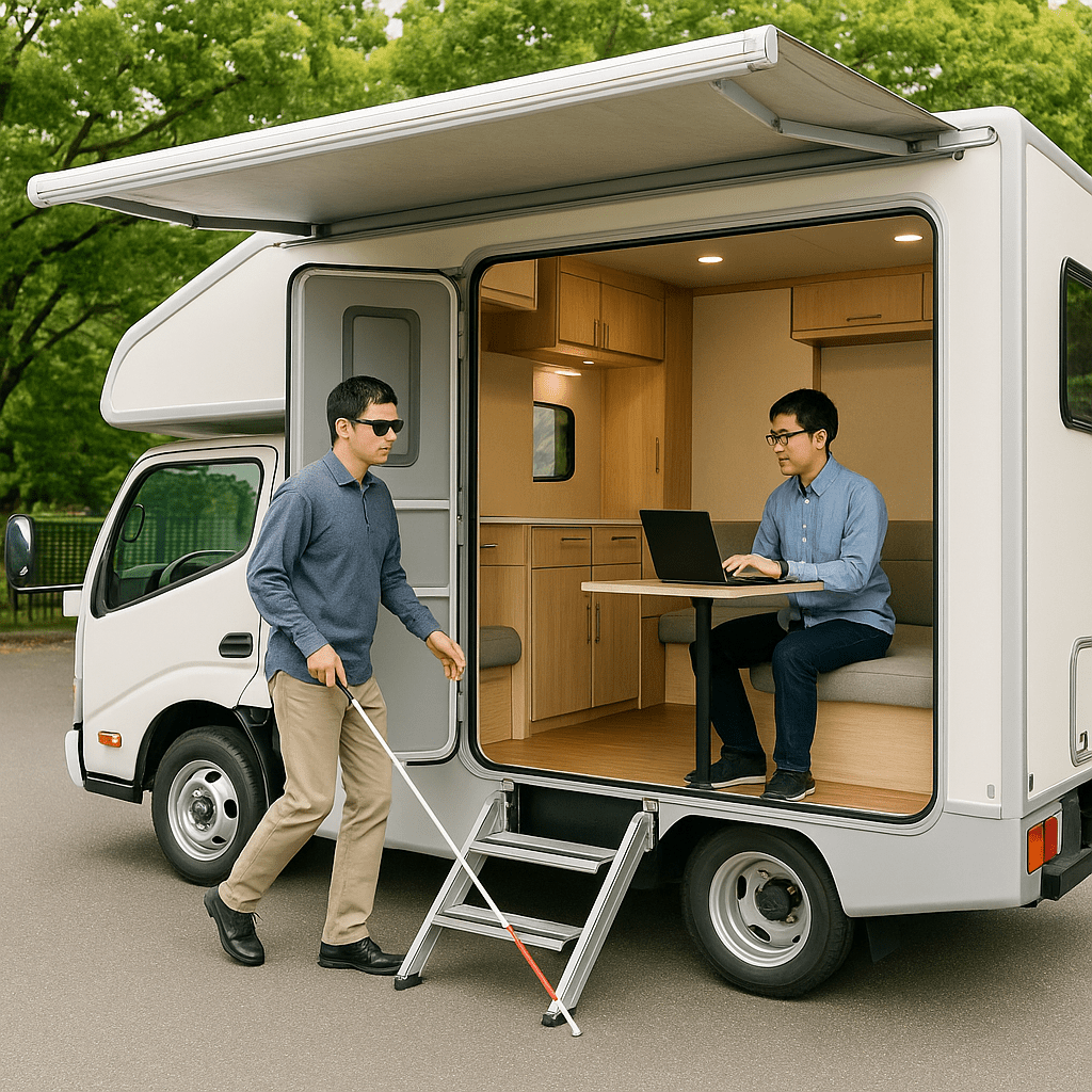 私たちしかさぽは、視覚障害のある方のために、もっと身近で、もっと柔軟な訓練環境を模索してきました。そして今、1.5トントラックキャンピングカー「キャントタス」を活用した“移動式訓練室”の可能性に大きな期待を寄せています。