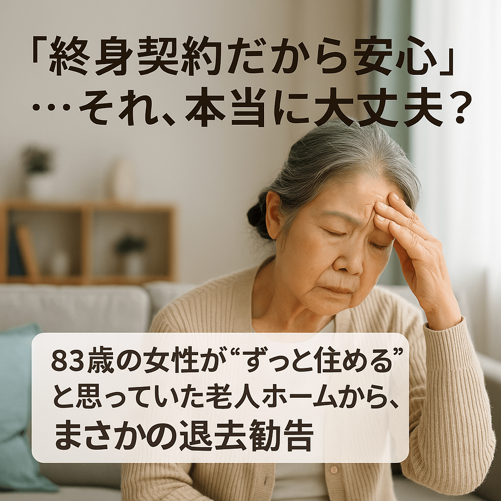 女性は「終身利用可」と信じていた一方で、契約書には“一定の状態になれば退去”と明記されていました。このような「思い込み」と「実際の契約」のズレは、誰にでも起こり得ます。