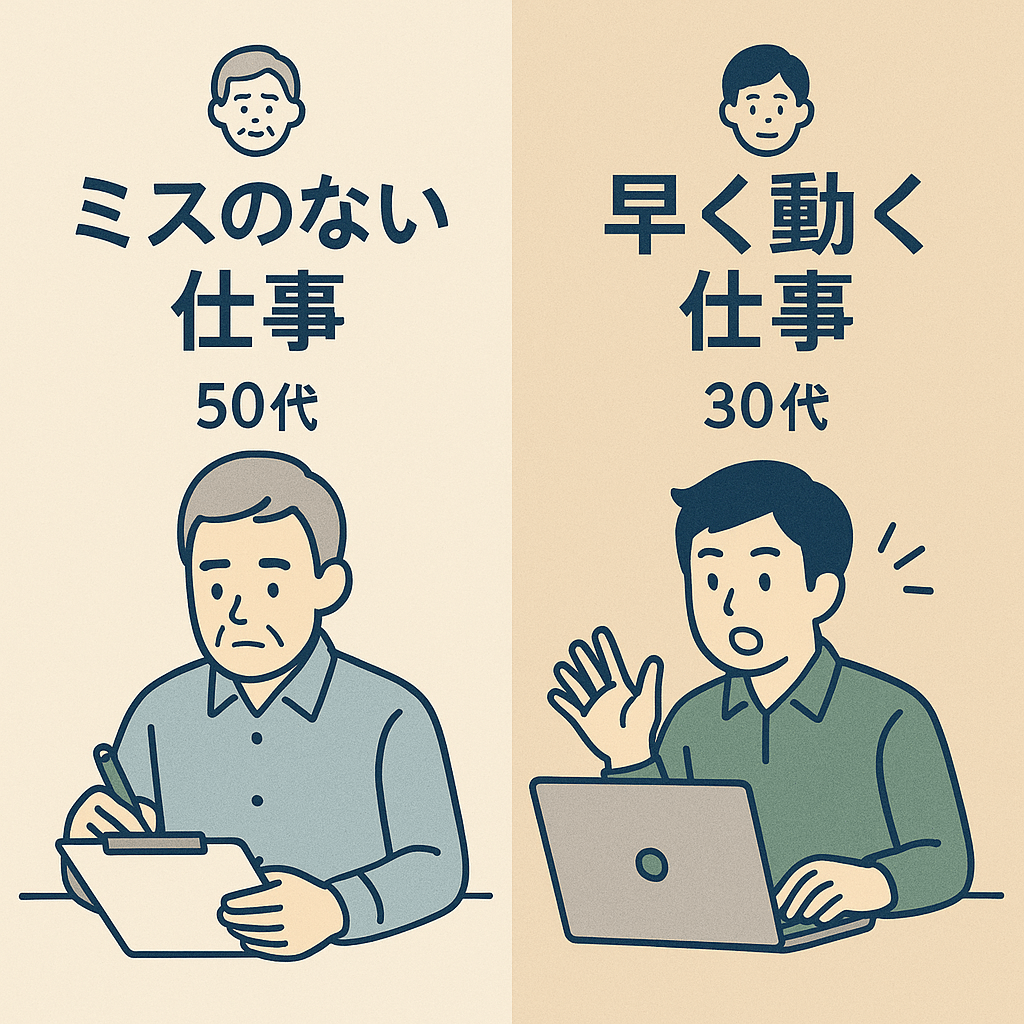 50代は、ミスをしないことを最優先に丁寧な仕事を心がけてきた世代です。ミスは「信用を失う」と教えられ、何重にも確認することが当たり前。しかし30代には、それが“非効率”や“時代遅れ”に見えることもあるのです。